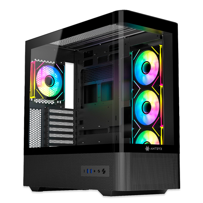 CASE ANTRYX FX 740 BLACK, 3 COOLER ARGB, USB TIPO C, VIDRIO TEMPLADO COD: 2225