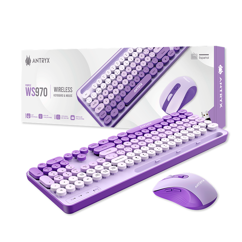 KIT INALAMBRICO ANTRYX WS-970 PURPLE, TECLADO Y MOUSE, WIRELESS, USB, (COD 2859)