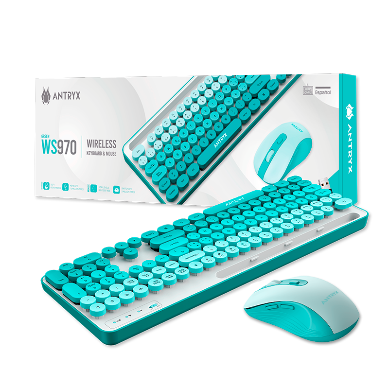 KIT INALAMBRICO ANTRYX WS-970 GREE, TECLADO Y MOUSE, WIRELESS, USB, (COD 2860)
