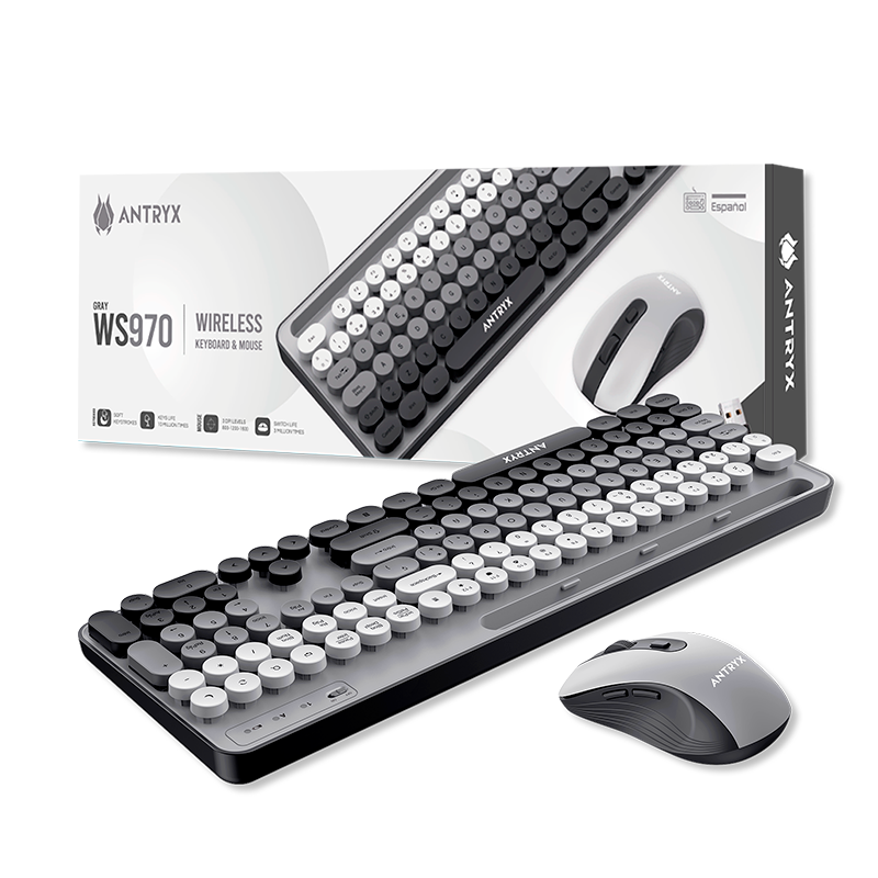 KIT INALAMBRICO ANTRYX WS-970 GRAY, TECLADO Y MOUSE, WIRELESS, USB, (COD 2861)