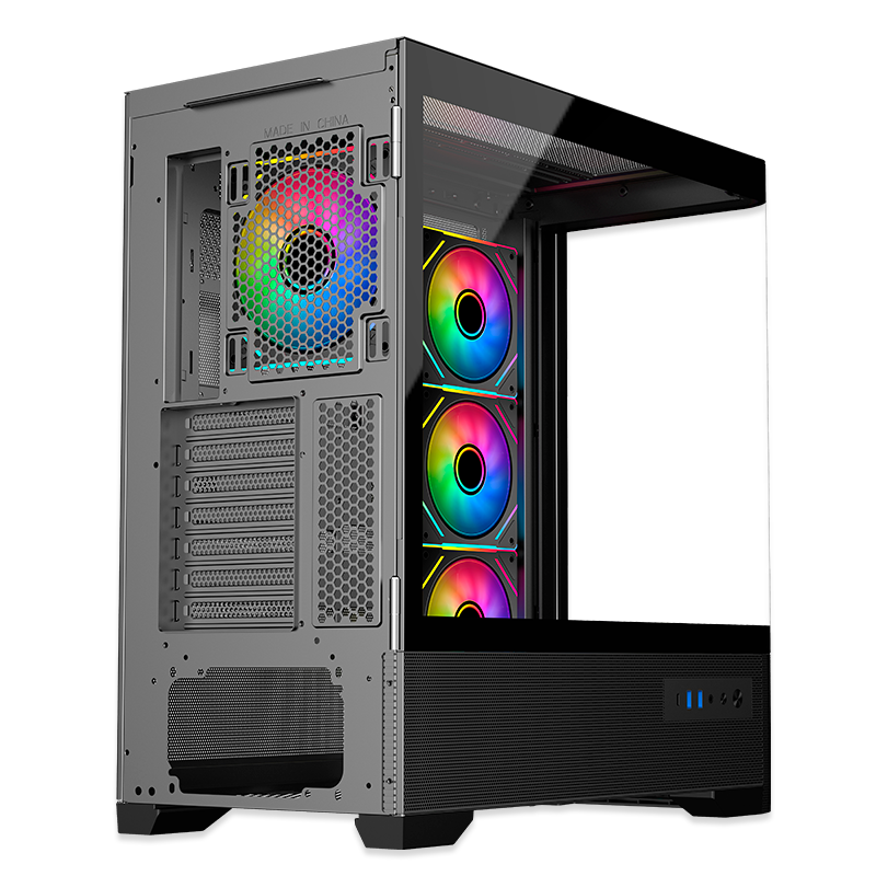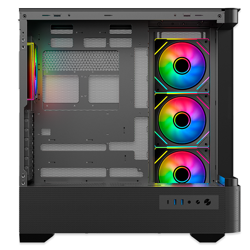| Puertos de ventilador: Lateral 3 x 12cm (ventilador ARGB efecto infinito instalado x 3), trasero 1 x 12cm / 1 x 14cm (ventilador ARGB efecto infinito instalado x 1), superior 3 x 12cm / 2 x 14cm (opcional), inferior 3 x 12cm (opcional) |