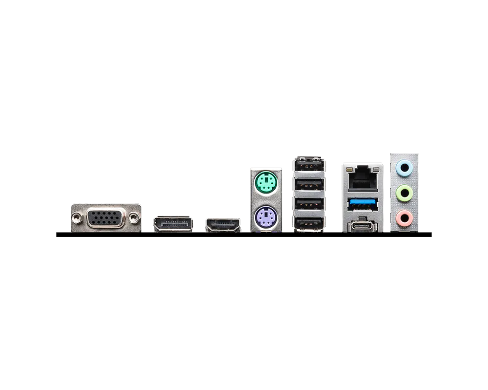 | Onboard Graphics | 1x HDMI™ Support HDMI™ 1.4, maximum resolution of 4K 30Hz* 1x DisplayPort Support DP 1.4, maximum resolution of 4K 60Hz* 1x D-Sub Support VGA, maximum resolution of 2048x1536 50Hz, 2048x1280 60Hz, 1920x1200 60Hz *Available only on processors featuring integrated graphics. Graphics specifications may vary depending on the CPU installed. |